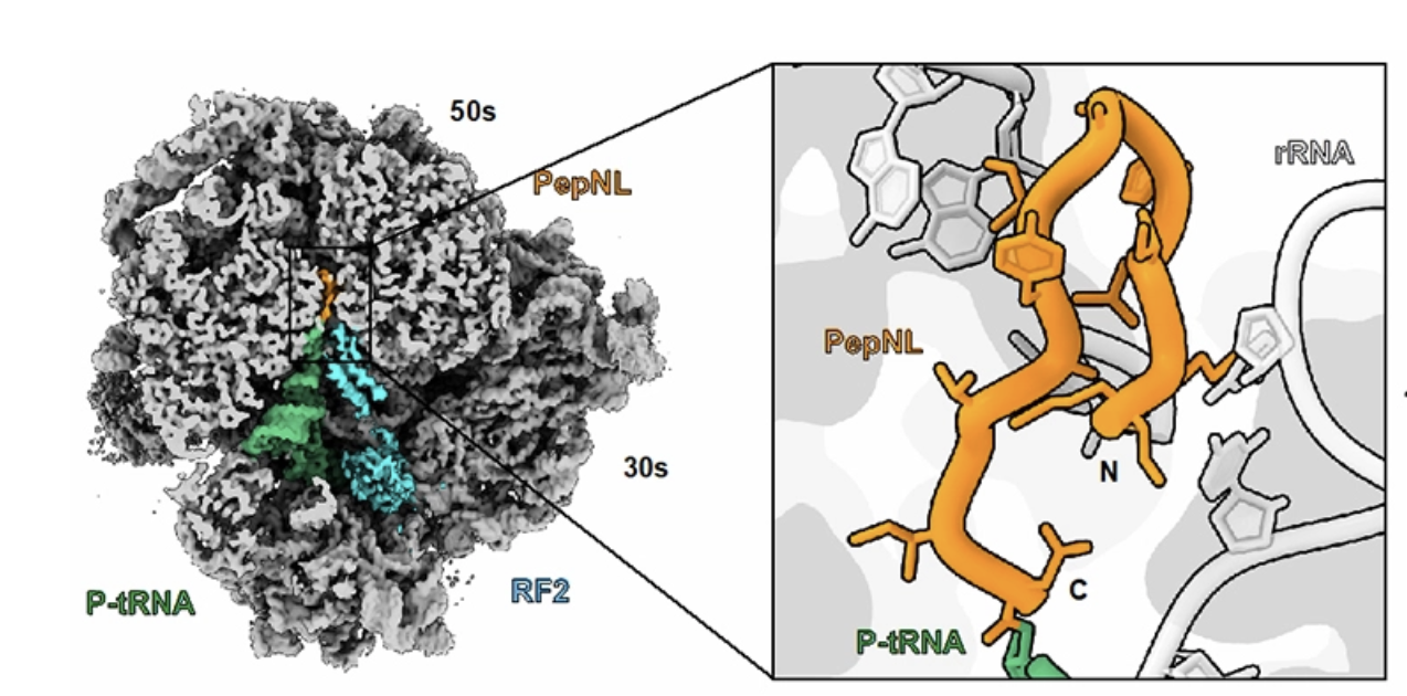 A mini-hairpin shaped nascent peptide blocks translation termination by a distinct mechanism.