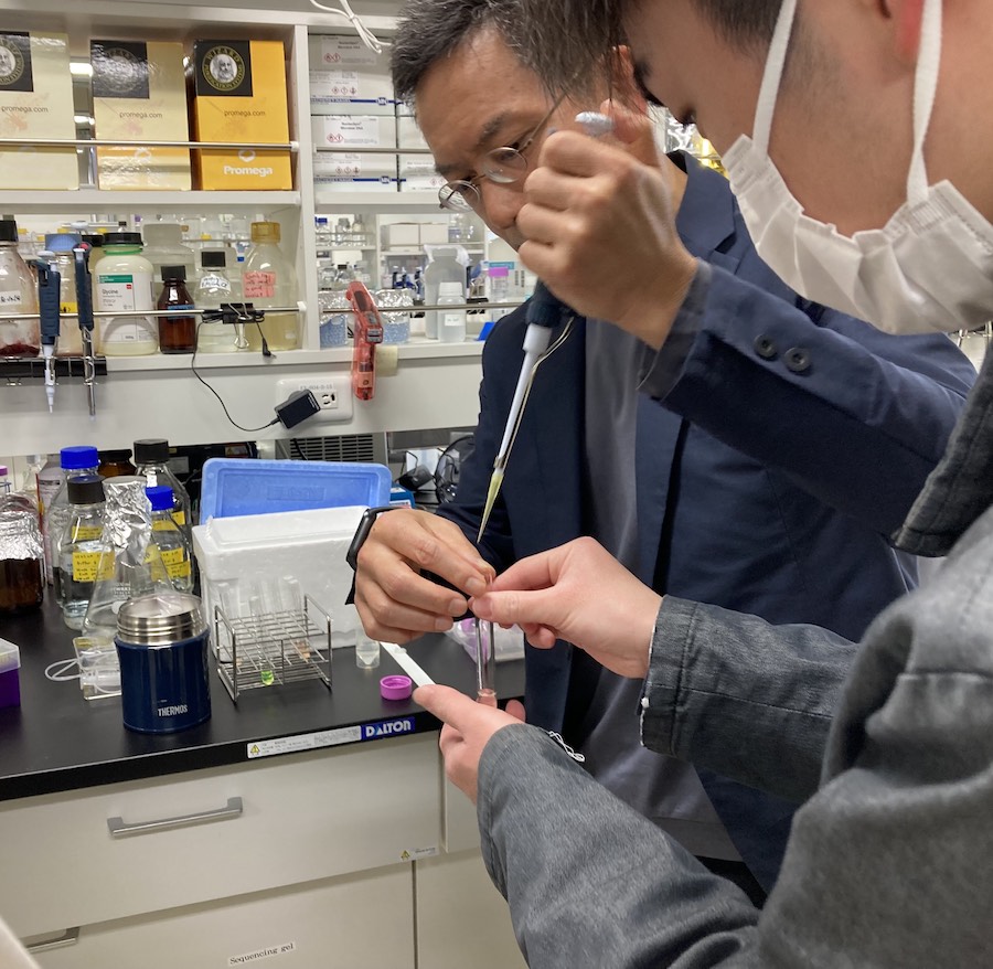 1)タンパク質科学の基礎に関する田口による模擬講義:学部1年生向けのパズルやGFPを使ってフォールディングを教えたりする内容(例:「GFPやRFPのフォールディングを直接目で見る実験」、スネークキューブパズルで遊んでもらう、など